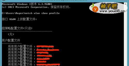 2、在cmd对话框中输入:netsh wlan show profile;(如下图所示)