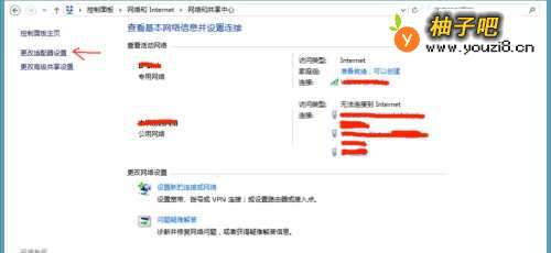 3如果2中的操作仍然没有解决问题,尝试前往控制面板-网络和Internet-网络和共享中心,并点击左边栏的:更改适配器选项,如下图所示: