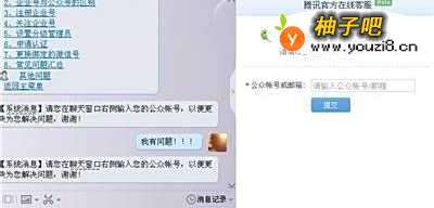 6我选择的是,微信公众帐号,因此,他要求我,在右边填写帐号。你按照要求填写,再确定。就可以与在线客服对话了。
