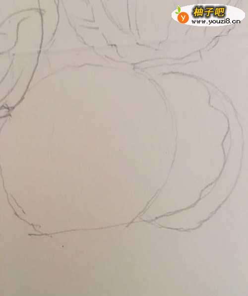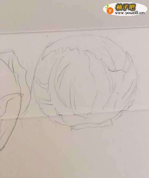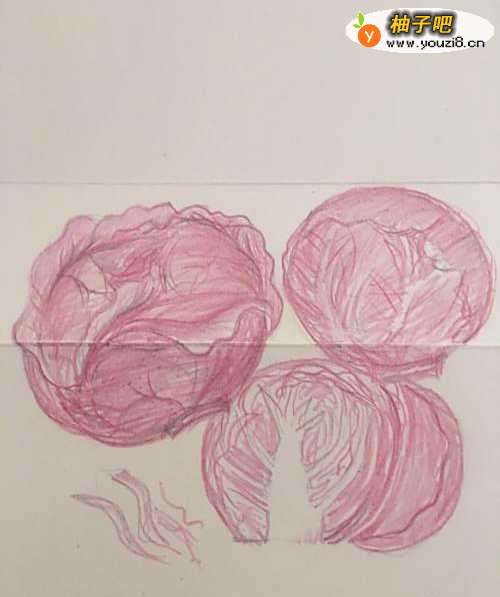 3第三步 再画上这个组图的第二部分 也是一个球体的紫甘蓝 方法同上