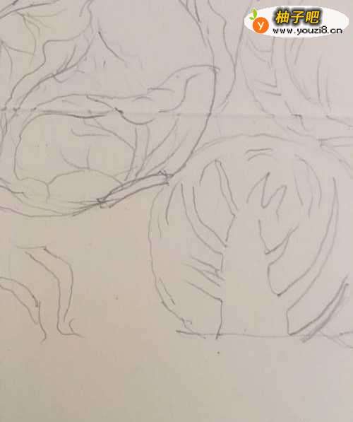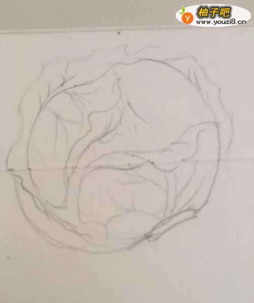 2第二步 根据这个轮廓画上它的草图 紫甘蓝的叶子纹路 含有卷叶等等