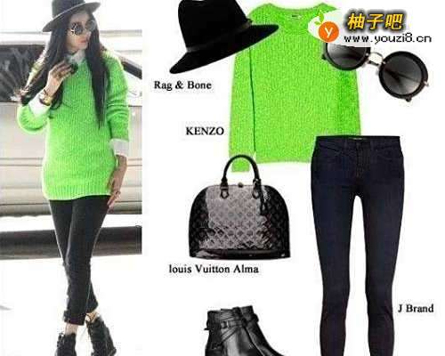 5早春,哈哈,当然少不了毛衣呀!你的衣柜里也一定有意见绿得宛若春天般颜色的毛衣吧,现在可以穿上它咯,下身搭配紧身裤、休闲裤、休闲鞋都非常不错哦