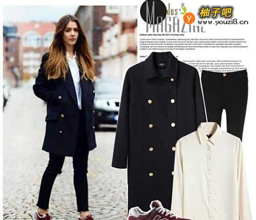 4厚度适中的呢子衣,休闲舒适的款式,搭配紧身裤子和运动鞋,各种场合都适合,并且不会被各种场合所束缚的最轻松简单的搭配哦