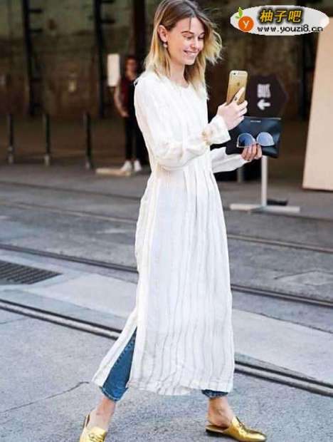 搭配六:黑色穆勒鞋+白色开叉包身裙黑色穆勒鞋搭配一条白色开叉包身裙,上身搭配一件最基础的黑色V领T恤,时髦、性感又很显身材,特别有欧美范儿。