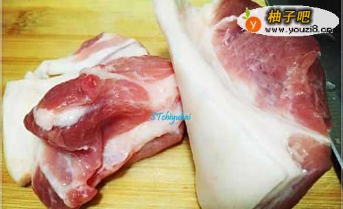 先处理腿肉,将腿肉去除外皮,然后用水清洗一遍,放到砧板上,将其切成薄片,肥瘦要搭配,等下能榨出一些油脂。