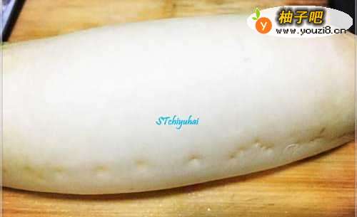 3准备一根白萝卜,挑选新鲜饱满的,将白萝卜洗净,然后用皮削削去外皮,多削去一些,现在很多萝卜都是采用化肥,所以外皮会比较硬,影响口感,多削去一层会好一些,然后将削去外皮的萝卜洗净切成薄片。