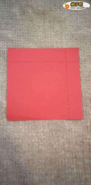 首先准备一张正方形折纸,沿图中虚线折叠