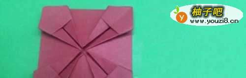 3然后把另外三边也折出上一步形状,拉起一个角往里压成正方形。