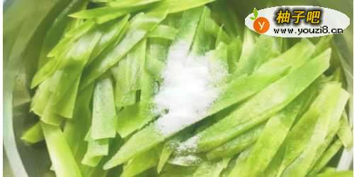 首先将青笋刮掉外皮,洗净,切成片,撒上少许盐,腌制约15分况菊钟。