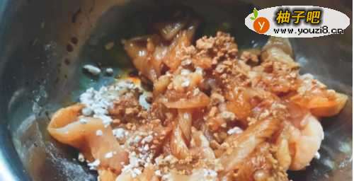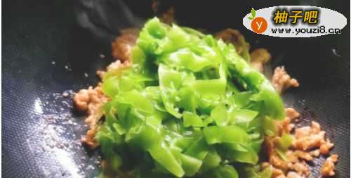 5加入挤掉水份腌制好的青笋片。佛娃往