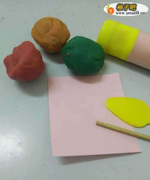 先准备彩泥、彩纸、小刀、牙签和胶棒。