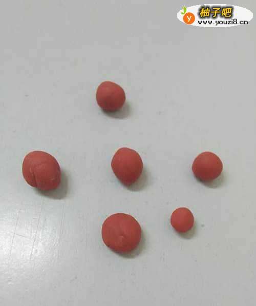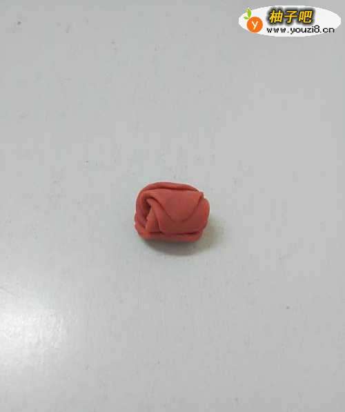 6用牙签在彩泥卷的中间按下去,分成两个小卷。