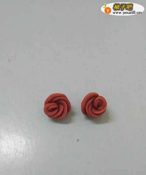 7把每个小卷的底部捏圆,两朵花就做好了。