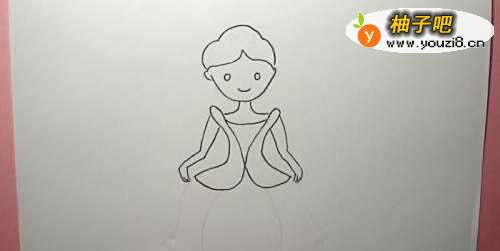 2接着,用黑色彩色笔在卡纸上画出美丽的小公主的头、身体和手臂的图形出来,如下图所示。