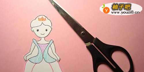 5然后,用剪刀把卡纸上的美丽的小公主图形,剪出来,注意要慢慢的剪,不要剪坏图形了,如下图所示。