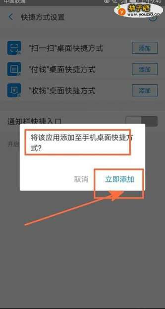 7最后,在出现的设置快捷方式提示中点击立即添加即可。