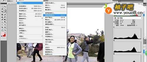 2选择窗口----直方图 打开图像的直方图,这样你就能看到如图所示的一个样子。这个图是什么意思呢小编根据自己的理解是这样解释的,最上面彩色的图是表示图像色相的分布的,下面三幅图分别是红绿蓝光线的分布,所以可以根据这个直方图来调整图像的色相和色阶了。
