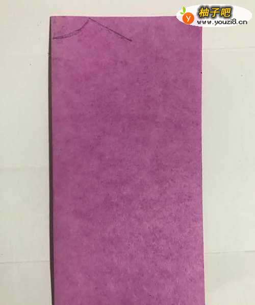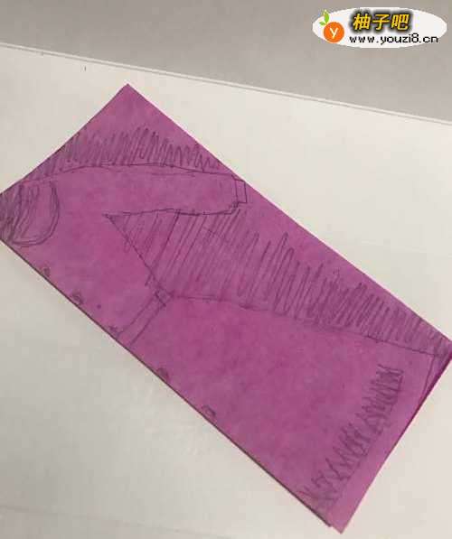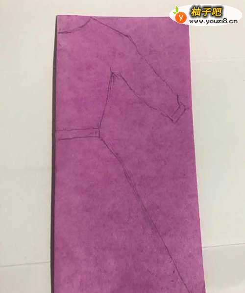 2第二步 从下向上对折好之后 再把它竖起来 双折边摆放在左边 然后拿起绘图铅笔 从上头画上简单的领窝和肩头