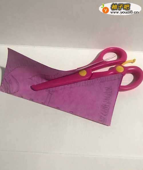 少儿简易手工启蒙剪纸 一件简单漂亮的连衣裙 怎样用彩纸裁剪 需要预备的材料为正方形彩纸一张 先把它正面朝里对折 竖起来双边在左 然后画上半件连衣裙 包括领窝 袖子 还有腰带 纽扣 领子等等 花好后用绘图铅笔剪下即可