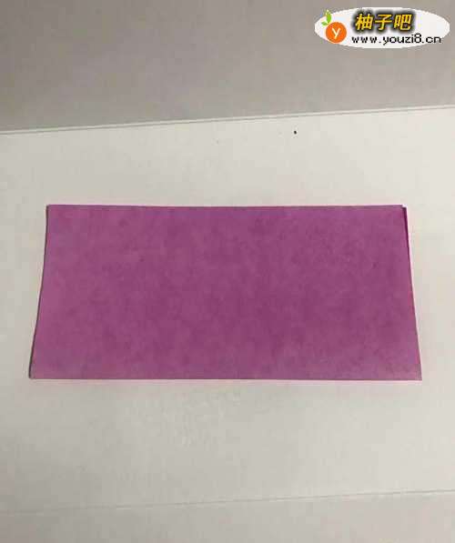 第一步 首先取一张长16厘米 宽同样是16厘米的正方形红色彩纸 先把它从下向上对边折叠整齐