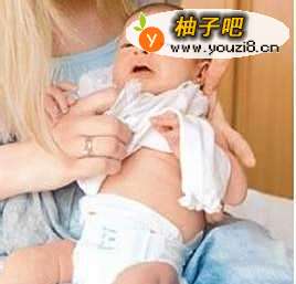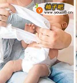 上衣沿着领口折叠成圆圈状,然后用手将衣服撑开争肺泉,从宝宝的头部穿过去。