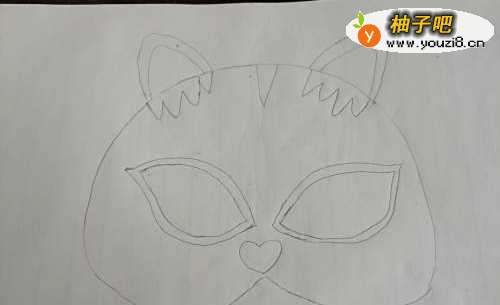 5画好后我们再来画在面具上的眼眶,然后在稍加修饰。