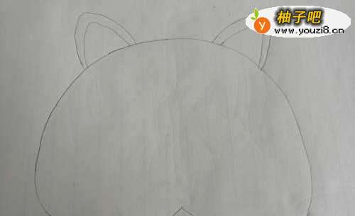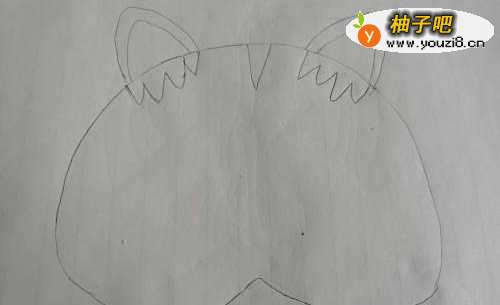 3画好轮廓后我们再接着来画它的耳朵,两个小山丘似的的三角形屹立着增加了些许威严感。