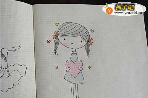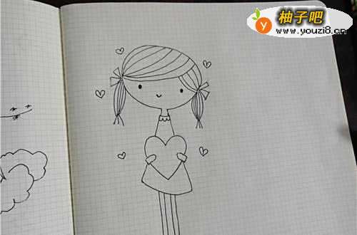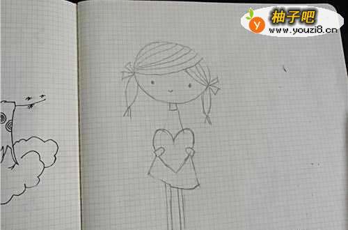 4然后再把身子和手中抱着的心画出来,如图所示。