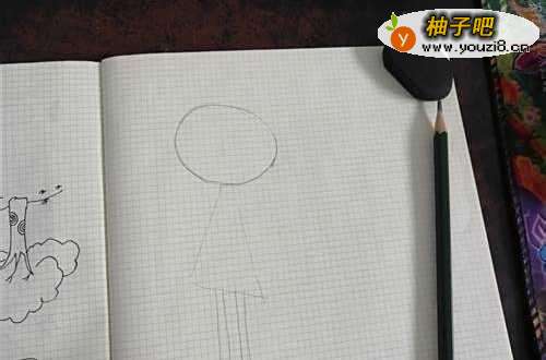 2我们先在纸上画上小姑娘的大体轮廓,如图。