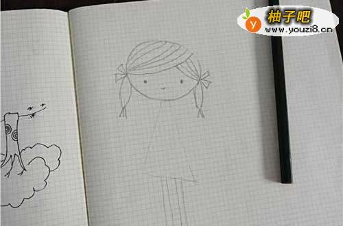 3先晃温新把小姑娘的头部细节画出来,头发用线条表示即可。