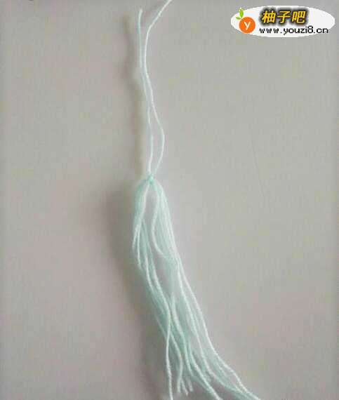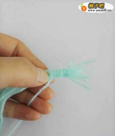 6再剪一些相同长度的毛线并在一起,然后沿着中间位置对折,把所有线头并在一起。