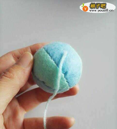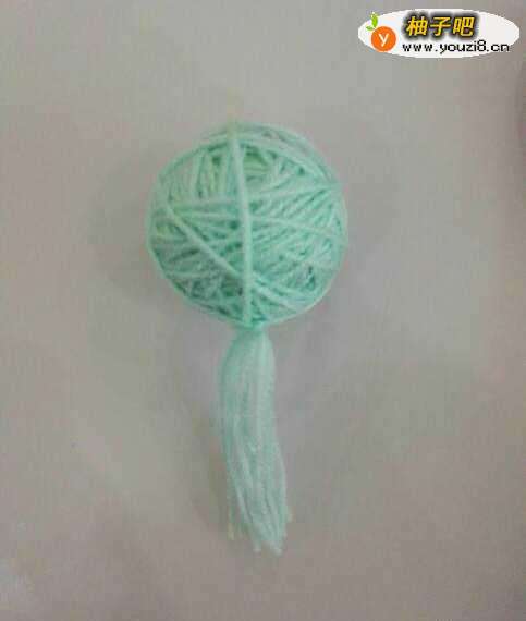 首先找一个小小的球形,这个是我之前给冉宝做玩具时做的,也可以用乒乓球之类的代替,只要球形就行。接下来将毛线的一头粘在球形物体上面