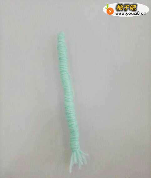 8以同样方法继续缠绕,把这整个毛线束全部包裹住,结尾线头粘在上面就行。