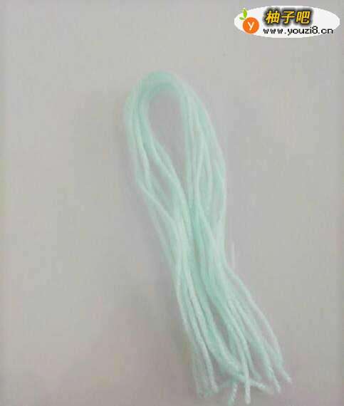 4将毛线剪成几根相同长度的并在一起,再用一根毛线系在这些毛线的中间位置。