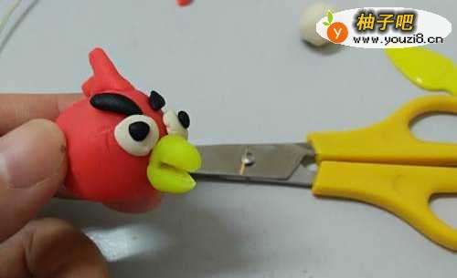 9用剪刀在鸟嘴上剪一刀,分成两瓣,更象鸟嘴了。