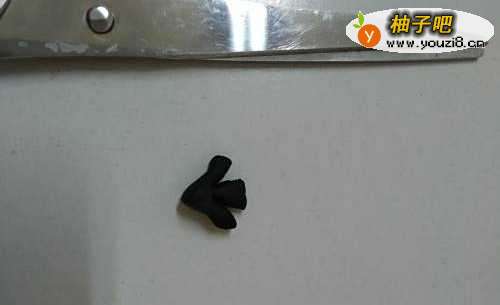 12用一小块黑色,捏成小三角,再施牢用剪刀剪两下,就成了一个尾巴。
