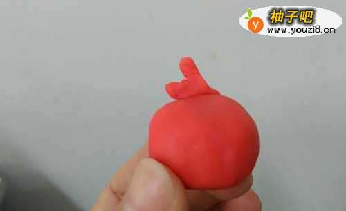 2先从主体颜色做起,小鸟的大块颜色是红色,先把红色揉成一个球。