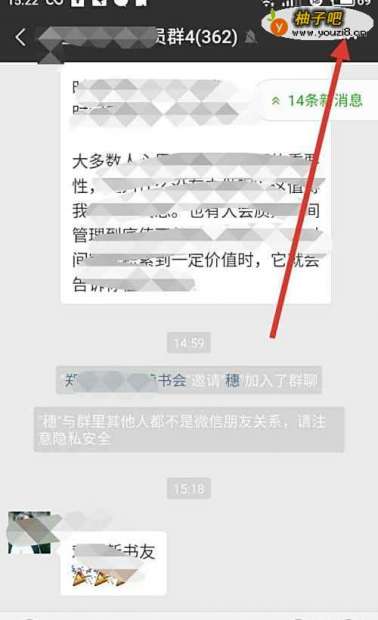 3进入微信群页面后,点击右上角的三个点,如下图所示: