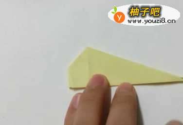 2然后再把右边上下两个角沿对角线对折起来,沿折痕折出两个三角形来。