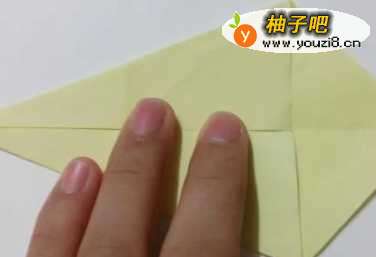首先准备一张正方形的纸,然后沿对角线对折,展开,然后把左边上下两个角沿对角线对折起来。