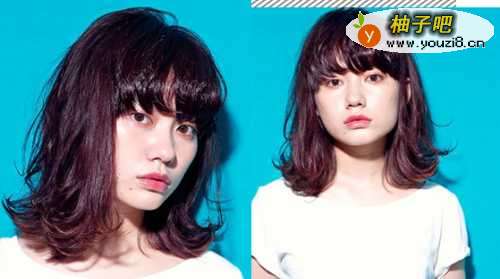6又是一款瘦脸发型,卷曲的齐刘海显得很呆萌,发尾烫卷外翘修饰脸型,染发更添个性,很适合方脸女生哦。