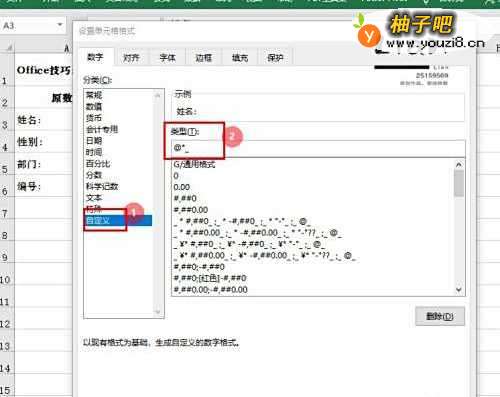 4在“自定义”类型对话框中,输入数字格式【@*_ 】,点击【确定】即可;