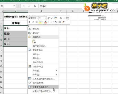 2选择单元格【A3:A6】,单击【鼠标右键】,选择【设置对象格式】;