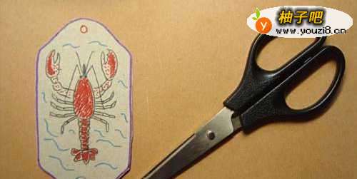 6最后,用剪刀把书签剪出来,这样一个可爱的小龙虾书签就做好了,喜欢的朋友也来做做吧。