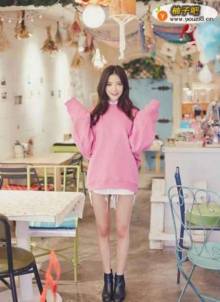 今年非常流行的粉色卫衣,搭配一条白色小短裙,裙子的长度不要长,直接在衣服下面露出一点点就行了,非常的性感,一双内增高小白鞋,或者裸靴,瞬间大长腿哦。