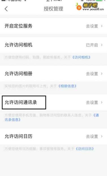 5打开授权管理页面选项中选择点击“允许访问通讯录”。