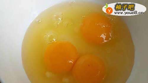 2然后将鸡蛋中放入盐搅散,倒入小葱中搅匀。