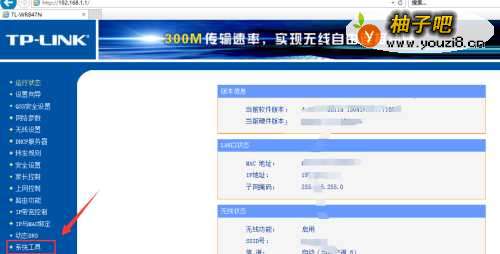 2进入TP-link的设置界面,点击右侧菜单的系统工具,如下图所示