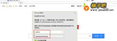 TP-Link默认设置IP是192.168.1.1,电脑先连上路由器,浏览器输入192.168.1.1,弹出登陆对话框,输入你的初始账号,密码。admin。如下图所示