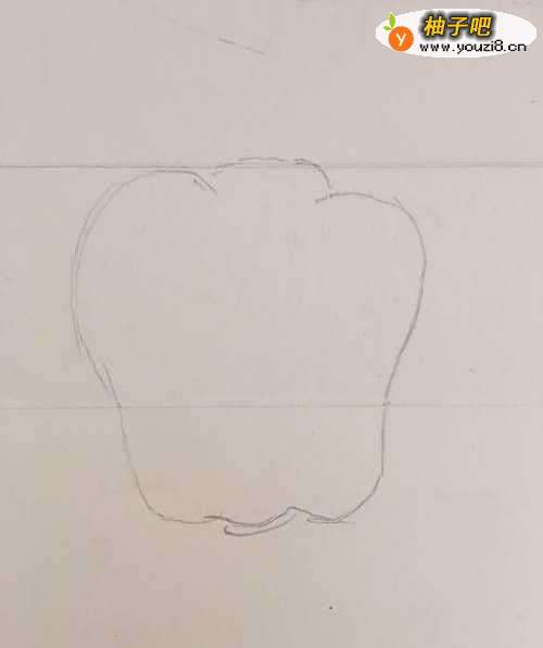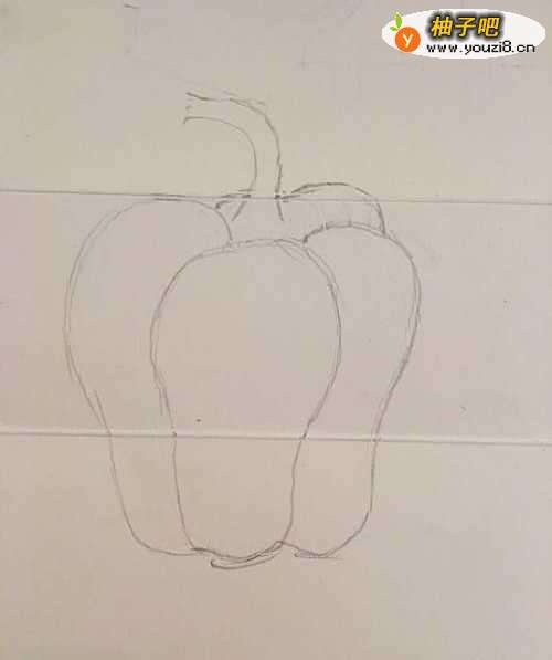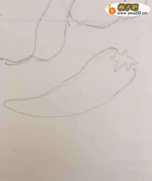 第一步 先画一个辣椒的外形轮廓 画的时候要轻轻的画 不然铅笔擦不干净的